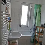 Nettes Schlafzimmer Mit Gemeinschaftsbad In Zentraler Lage heeft een apart toilet, een badkuip en een douche voor uw comfort. Je vindt er ook een haardroger en badlakens.